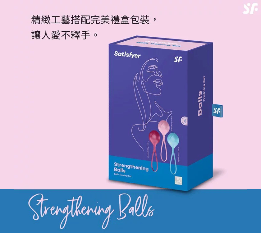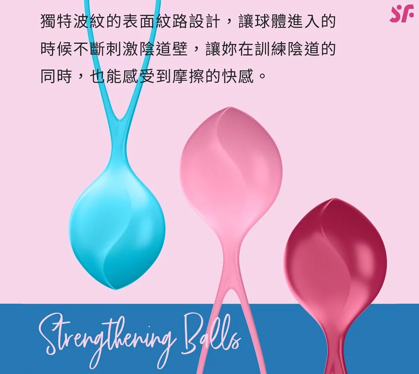 德國Satisfyer Strengthening Balls,妳的第一個凱格爾訓練聰明球,使用超柔軟、富彈性的親膚矽膠製成,讓使用者體驗到舒適和愉悅,不會有令人厭倦的異物感。獨特波紋的表面紋路設計,讓球體進入的時候不斷刺激陰道壁,讓妳在訓練陰道的同時,也能感受到摩擦的快感。