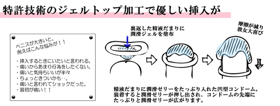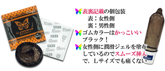 大尺碼的安全套,推薦予討厭勒緊安全套的人士。 現在,大尺碼的男與女都可感受魅力蝴蝶所帶來的幸福! 由於有大量潤滑劑在安全套的頂端,即使有這樣的尺寸,都可溫柔的進入!